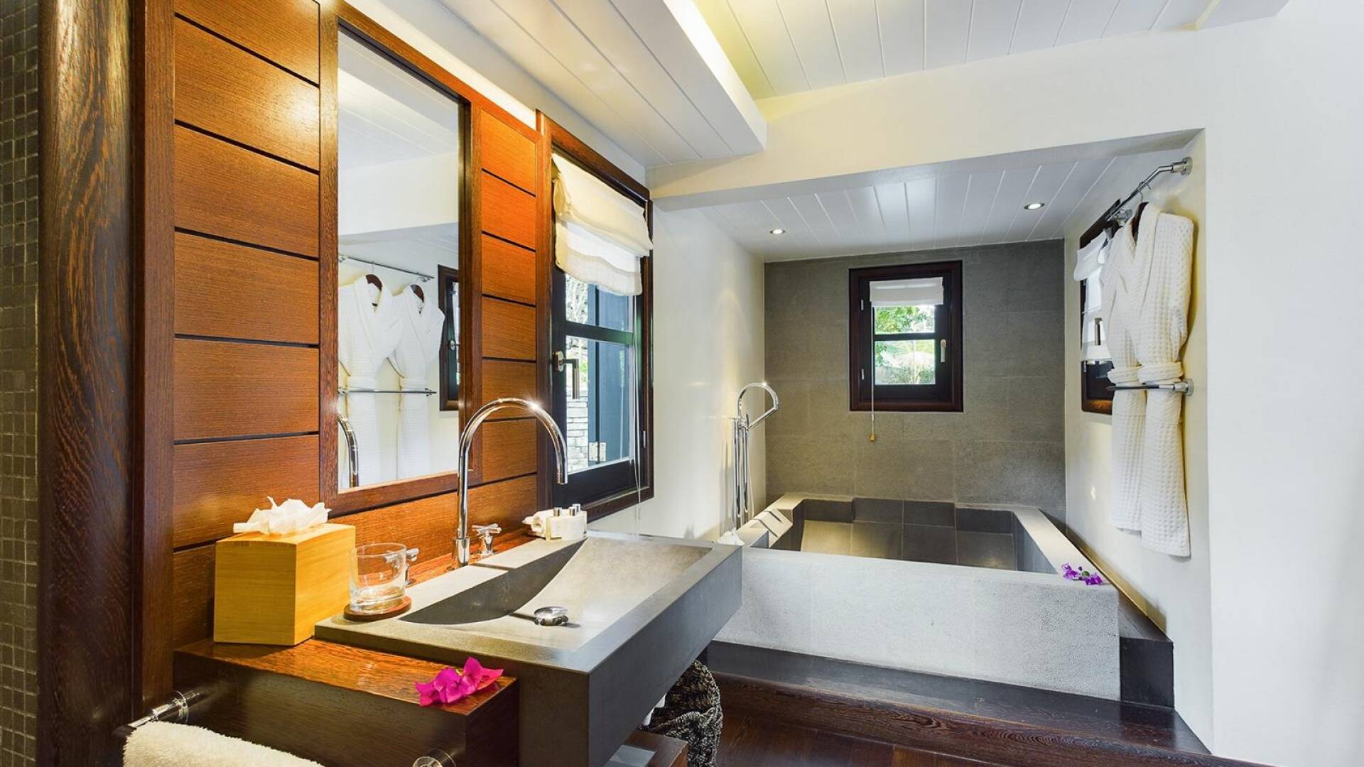 - Bathroom with bathtub and shower